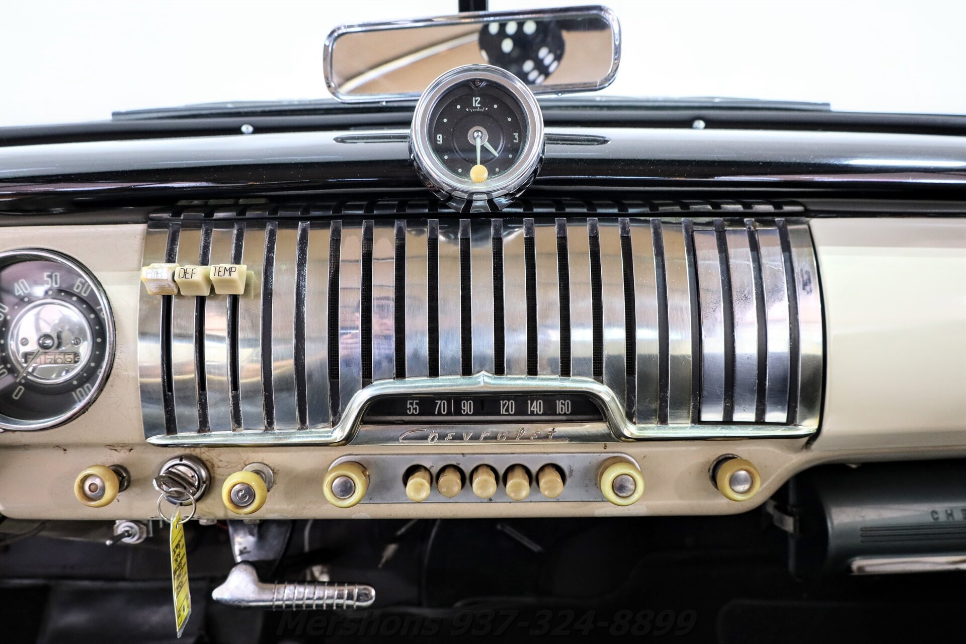 Onyx Black with a White Roof over a Two Tone White and Black Interior. Casting Number '3835499' 235 Cubic Inch Straight Six paired to a Powerglide Automatic. Features Include Dash Clock, AM Radio, Tissue Dispenser, Stainless Wheel Covers with Whitewall Tires and more! If you are looking for a fun cruiser, something to take to local Car shows, look no further! This '52 has loads of Style, dripping with Chrome! All of the brightwork is in excellent condition! And it looks great in Onyx Black with a White Roof! These cars are hard to find in good shape, and this one fits the bill! Its ready for your garage, so dont wait, give us a call today!!