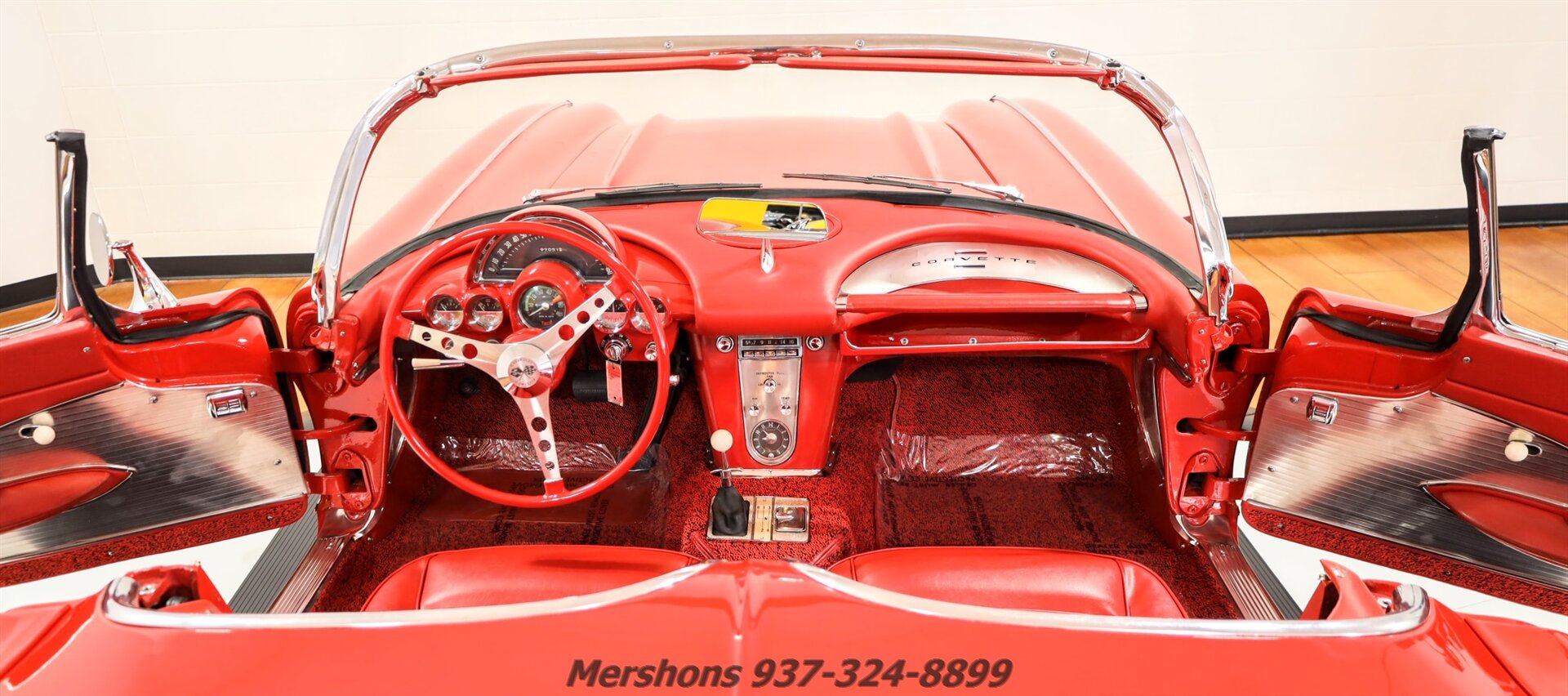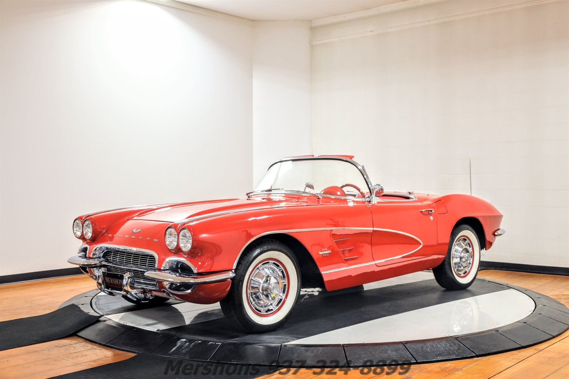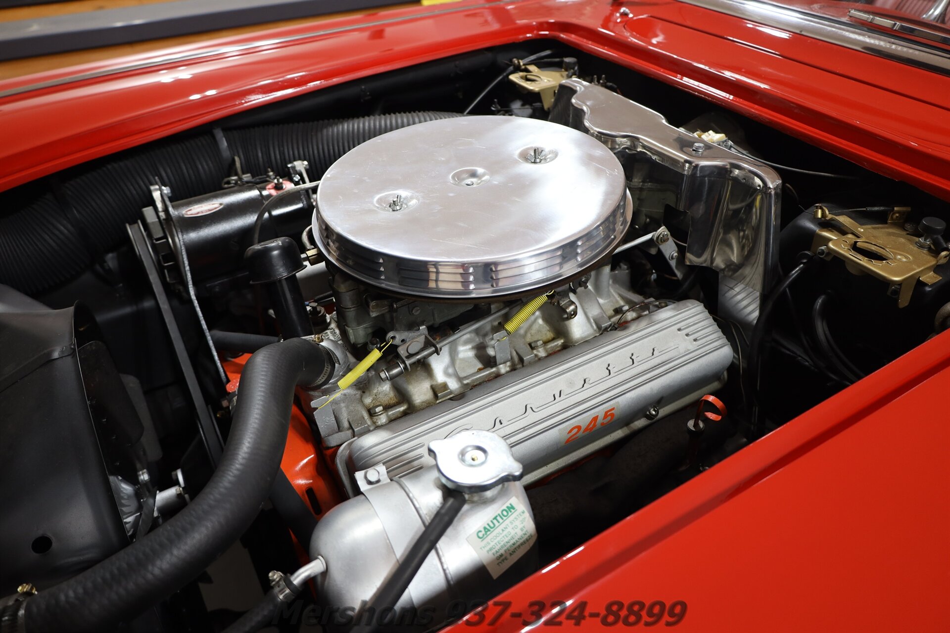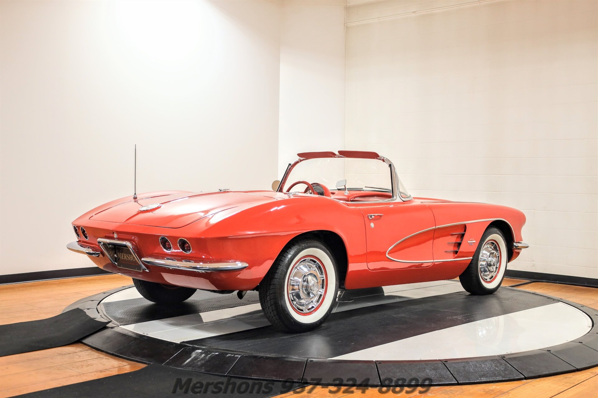 Roman Red over a Red Interior with a Brand New White Convertible top. Casting Number '3756519' CT Suffix Block. Numbers Matching 283 245 HP Dual Quads 4 Speed. Many Factory Type Components including Wonderbar Radio, Courtesy Light, Windshield Washer Bottle, Reverse Lockout Shifter, Seat Belts, Sun Visors, Ignition Shielding, Trunk Mat, Stainless Wheel Covers Whitewall Radials and more!. Very Iconic Roman Red '61! Beautiful Brightwork throughout, and Super Clear Instruments. New Carpets, Immaculate Door Panels, and a very Nice Dash! This Corvette attract attention everywhere it goes! And Red on Red is one of the best color combos on an early Corvette like this one! Very enjoyable to drive, and will have you looking for excuses to hit the road! So please give us a call today, we would love to hear from you!