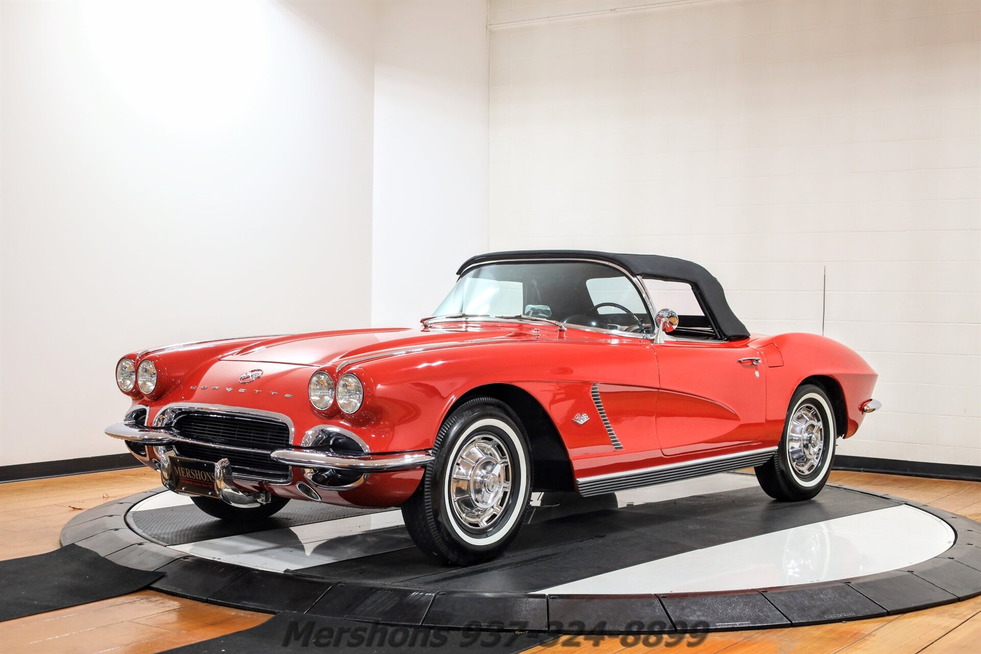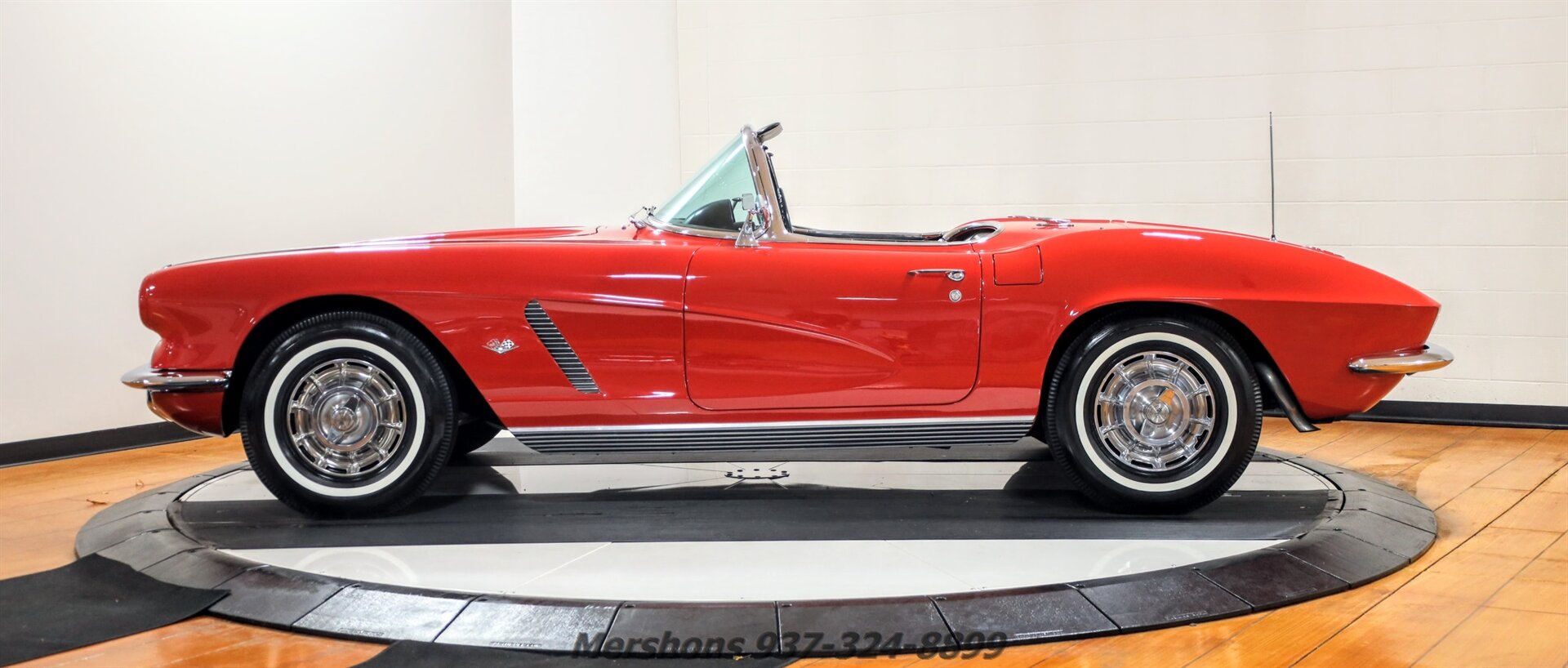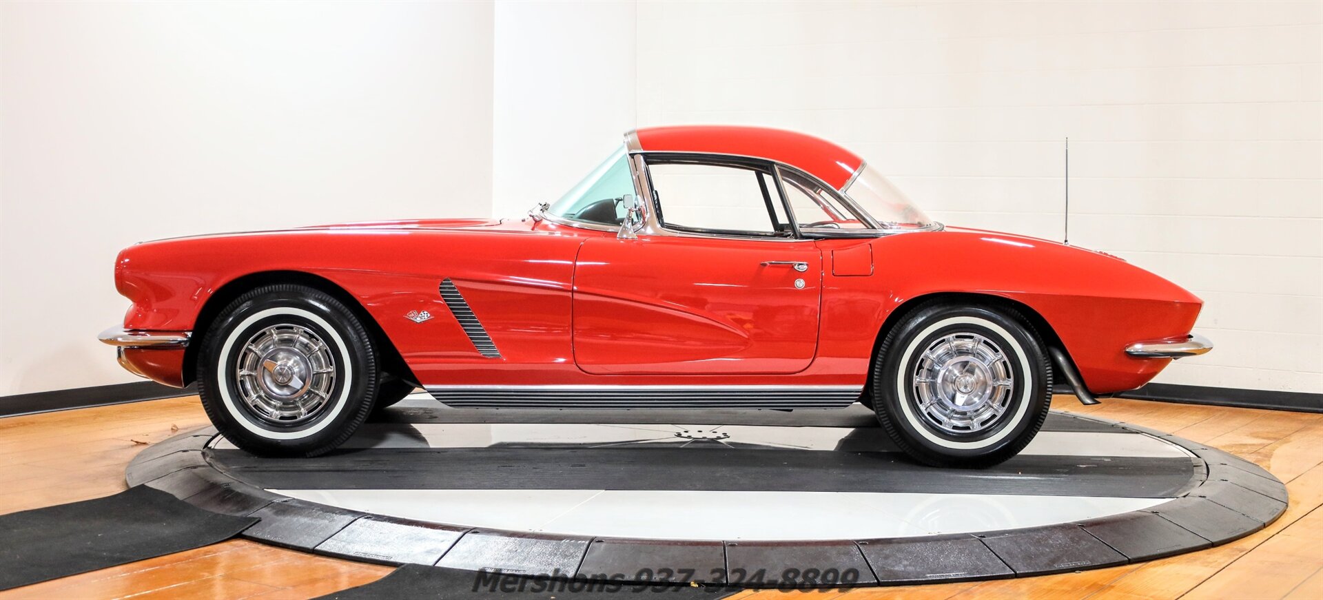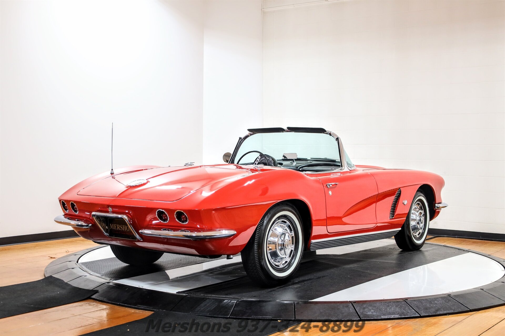Roman Red over a Black interior with a Black Canvas Convertible Top and an Auxiliary Hardtop. Casting Number '3782870' RE Suffix Block. Numbers Matching 327 340 HP Paired to a 4 Speed Manual Transmission. Features Include Auxiliary Hardtop, Wonderbar Radio, Courtesy Light, Reverse Lockout Shifter, Ignition Shielding, Windshield Washer Bottle, T3 Headlamps, Harrison Radiator and Overflow, Stainless Wheel Covers with Whitewall Tires and more! This is a Gorgeous 1962 Corvette! Beautiful Cosmetics with Excellent Stainless and Chrome! Talk about a head turner! Both TOPS!! Nice Tight Driver that is a lot of fun out on the road with a 340 HP and a 4 Speed!! The most iconic Color on a Solid axle, Roman Red!! Please give us a call today for more detailed information! We would love to hear from you!