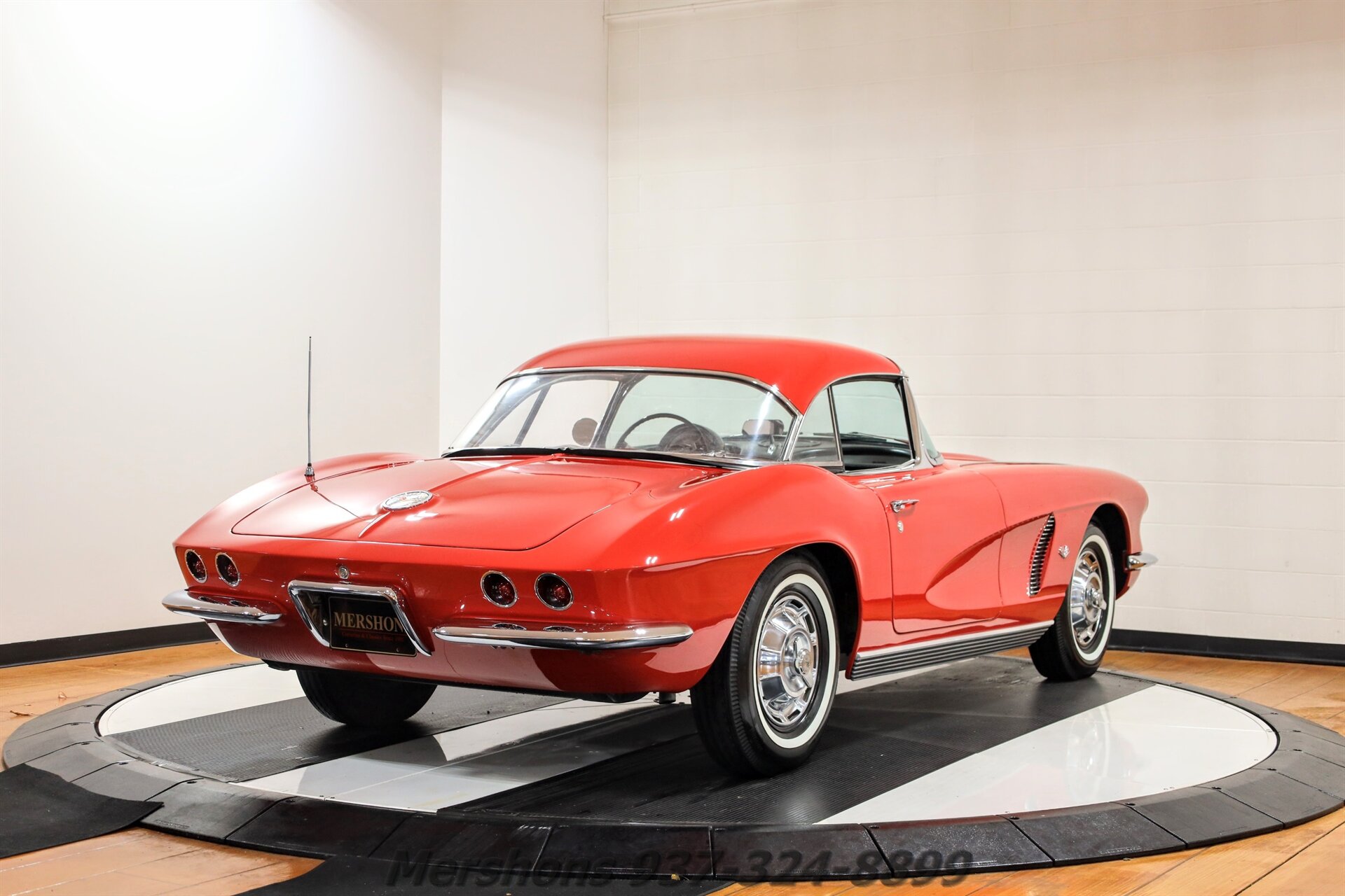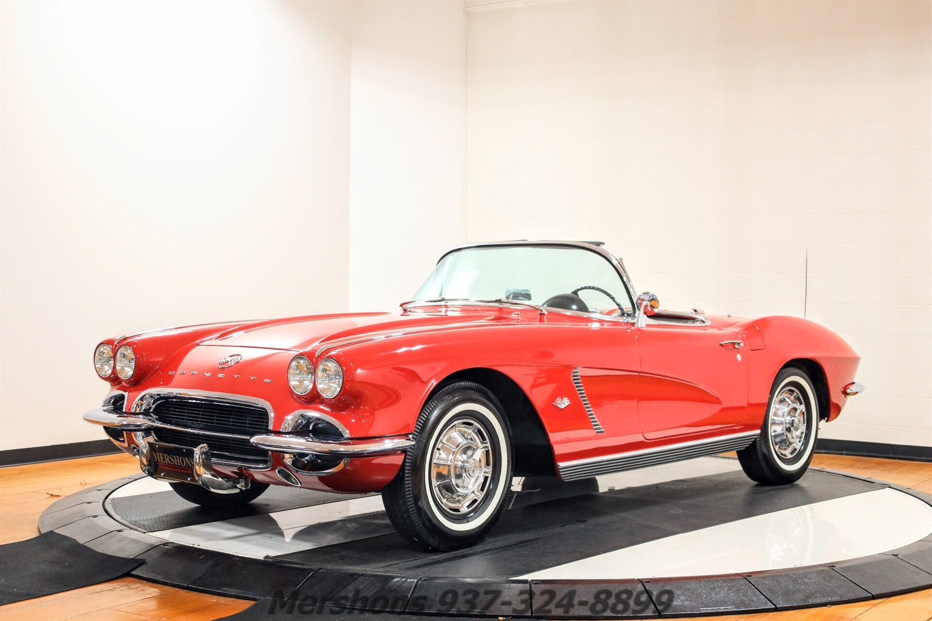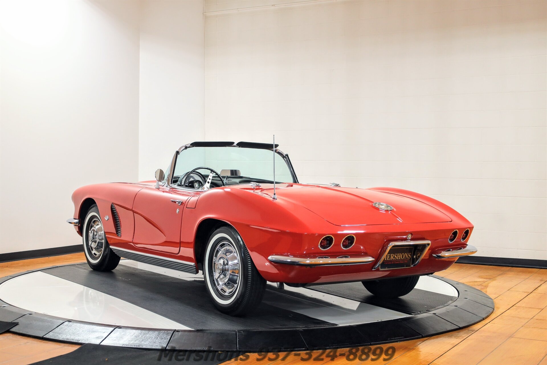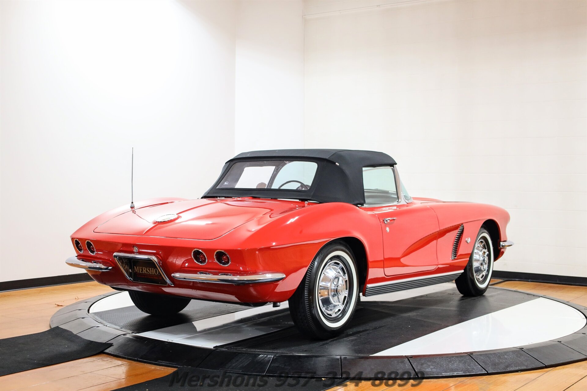 Roman Red over a Black interior with a Black Canvas Convertible Top and an Auxiliary Hardtop. Casting Number '3782870' RE Suffix Block. Numbers Matching 327 340 HP Paired to a 4 Speed Manual Transmission. Features Include Auxiliary Hardtop, Wonderbar Radio, Courtesy Light, Reverse Lockout Shifter, Ignition Shielding, Windshield Washer Bottle, T3 Headlamps, Harrison Radiator and Overflow, Stainless Wheel Covers with Whitewall Tires and more! This is a Gorgeous 1962 Corvette! Beautiful Cosmetics with Excellent Stainless and Chrome! Talk about a head turner! Both TOPS!! Nice Tight Driver that is a lot of fun out on the road with a 340 HP and a 4 Speed!! The most iconic Color on a Solid axle, Roman Red!! Please give us a call today for more detailed information! We would love to hear from you!
