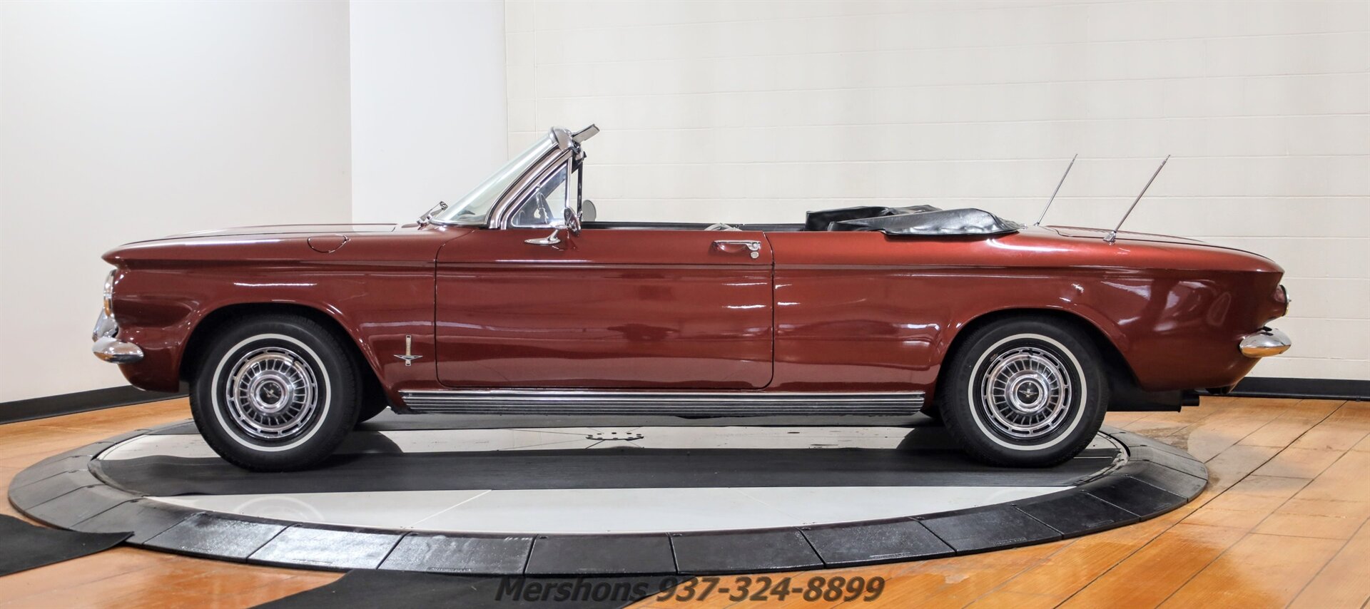 Color Code 948 Palomar Red over Black Interior with a Black Power Convertible Top. Turbo Air 6 Paired to an Automatic Transmission. If you are looking for something a little different, something a little more interesting... This might just be it! A great entry level Collector car with a very interesting history! A rear engine, air cooled affordable American Car! At a time when fuel efficiency was just beginning to become important! This was the American Response, and it had more Room and Horsepower than similar foreign economy cars! Unusual for the time, four wheel Independent suspension! This example is color Code Correct Palomar Red! And it runs and drives well! The transmission shifts as it should, and it has a very Clean and Dry undercarriage! Whitewall Radials and Correct Stainless wheel covers look great! The power top works flawlessly! Just a great example of a '63 Corvair! So please give us a call today for more detailed information!