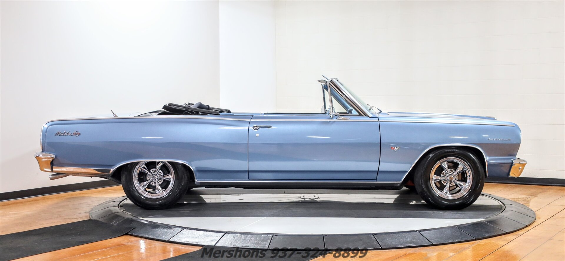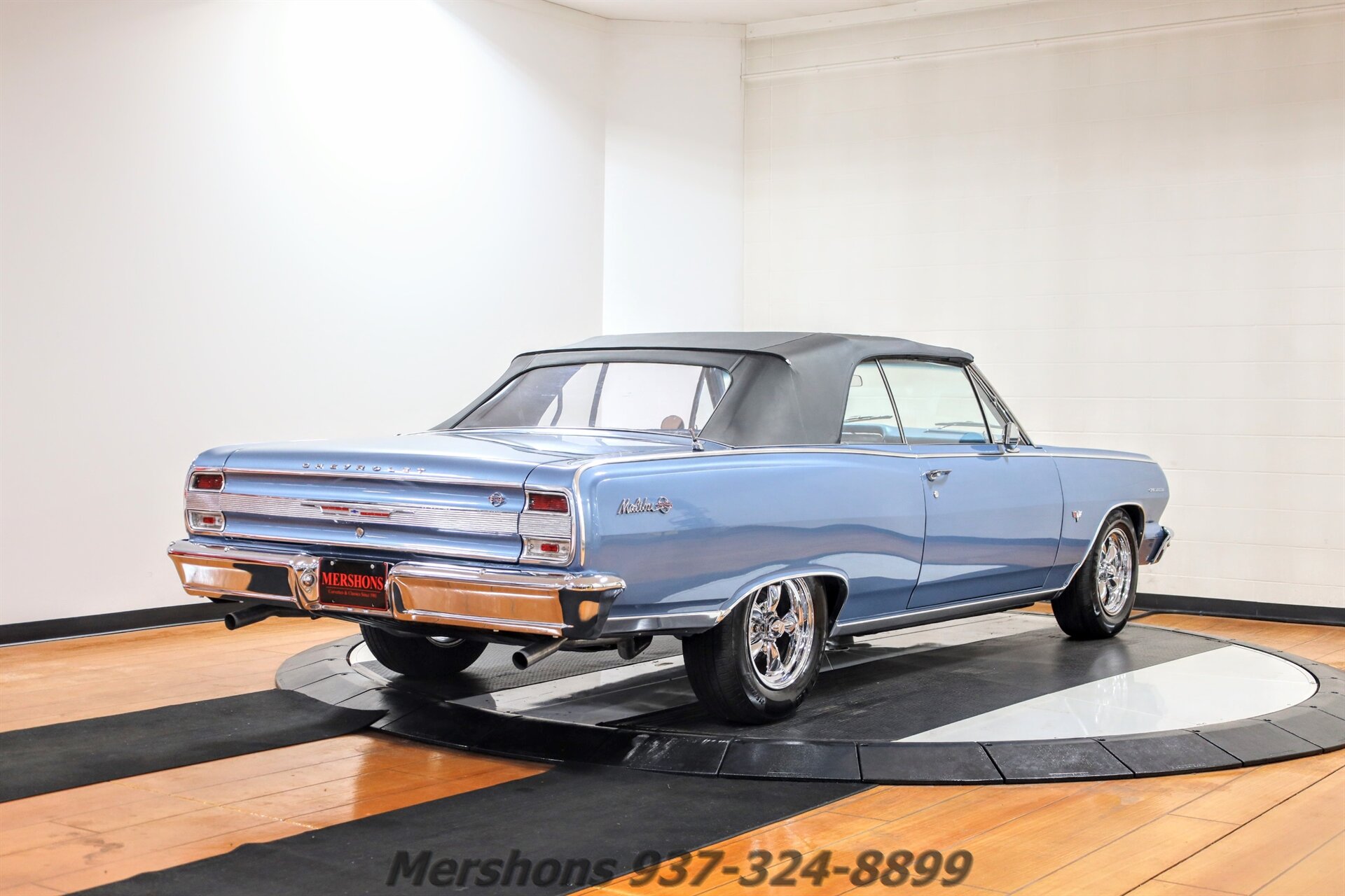 Color Code 912 Silver Blue over Trim Code 741 Medium Blue Metallic with a Black Power Convertible top. Casting Number '10066036' 350 Small Block Paired to a 4 Speed Manual Transmission. Feature Include Bucket Seats and Console, Power Top, Power Steering, Power Brakes, Polished 5 Spoke American Racing Wheels with Performance Radials and more! This Malibu stand OUT in Silver Blue! And it is loads of fun to drive! Who doesnt want to bang gears in a Convertible Malibu! Power Steering makes it a dream on the road! Loads of power, and the Small Block is DIALED in! These cars are very collectable, and a great way to include your kids or grandkids in your hobby! Strap them in the backseat, drop the Power Top and have some fun in the sun!! So please give us a call, lets get this one parked in your garage today!!