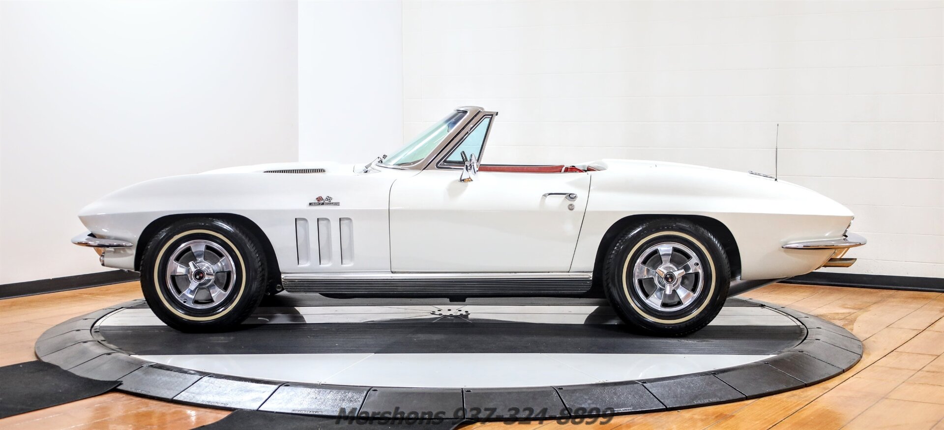 Color code 972 Ermine White over a Trim Code 407 Red Interior with a White Convertible Top. Casting Number '3869942' IL Suffix Block. Numbers Matching 427 390 HP paired to a 4 Speed Manual Transmission. Many Factory Type Components including Power Steering, Reverse Lamps, ignition shielding, braided ignition wires, air cleaner, gas door assembly, door panels, Reverse Lockout Shifter, Stainless Wheel Covers with Whitewall Radials and much more. Very Iconic Ermine White over Red, just like the ORIGINAL Corvette!! Desirable 427 390 HP Big Block! This car has loads of Character and begs to be taken out on the Road! A fantastic addition to your garage! Big Blocks are Excellent Investments that will have you chuckling as you bang the gears! White over Red Corvettes do not last long, so please give us a call today!!