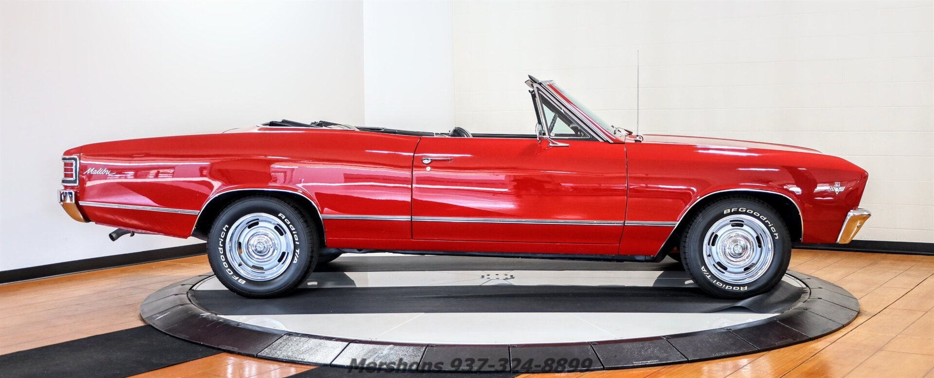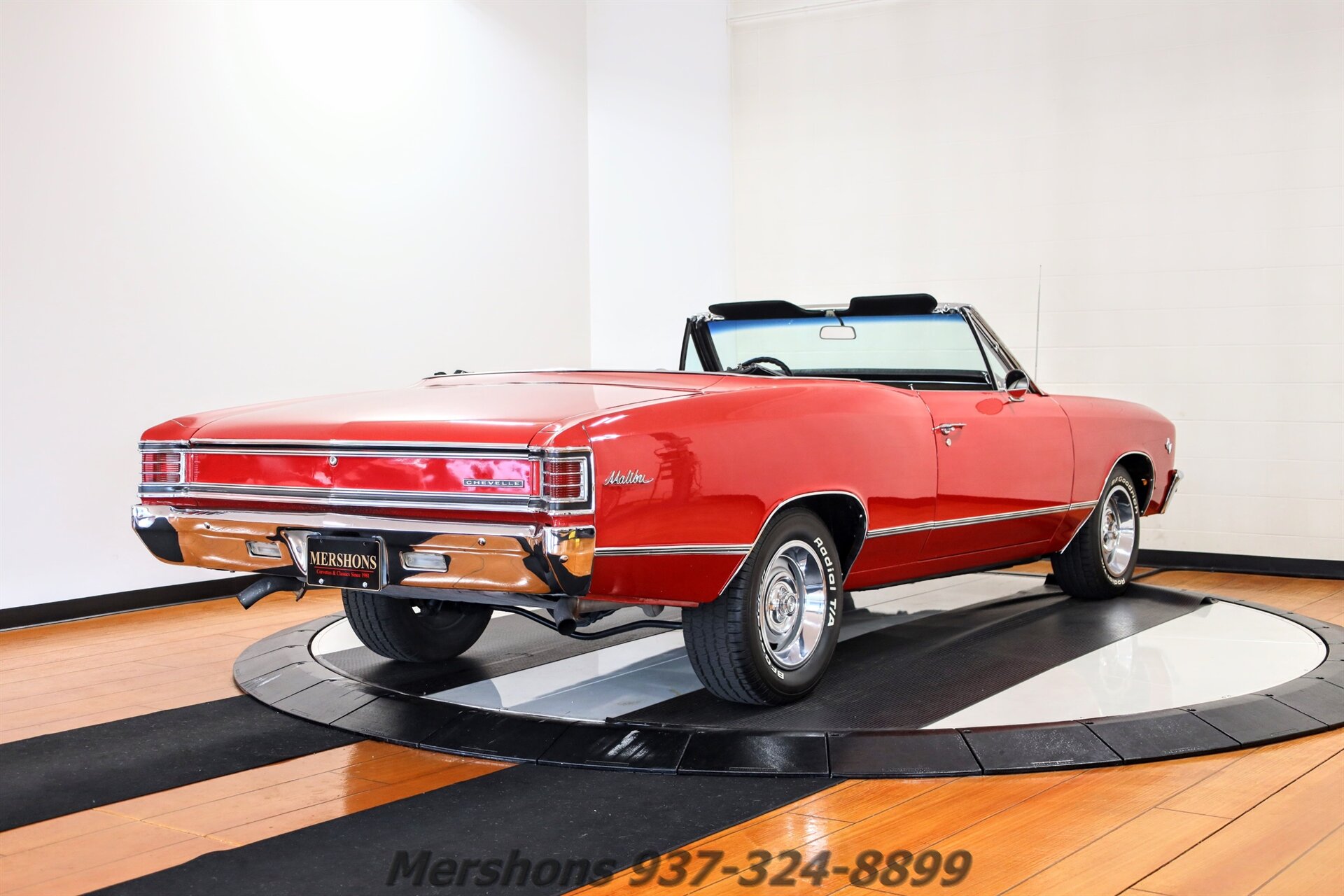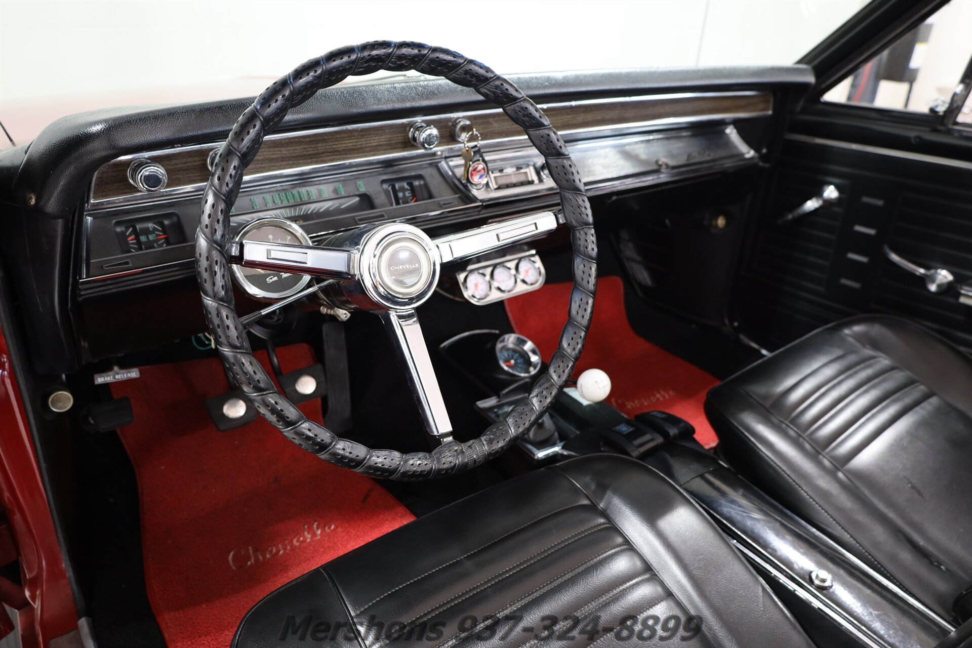 Bolero Red over a Black Interior with a Black Convertible Top. Correct Casting Number '3892657' 327 4 Barrel paired to a 4 Speed Transmission. Features Include Power Steering, Bucket Seats with Console, Knee Knocker Tach, Auxiliary Instruments, Power Convertible top, Rally Wheels with White Letter Radials and more!! This Chevelle stand OUT in Bolero Red! And it is loads of fun to drive! Who doesnt want to bang gears in a Chevelle! Power Steering makes it a dream on the road! Loads of power, and the 327 is DIALED in! These cars are very collectable, and a great way to include your kids or grandkids in your hobby! Strap them in the backseat, drop the Power Top and have some fun in the sun!! So please give us a call, lets get this one parked in your garage today!!