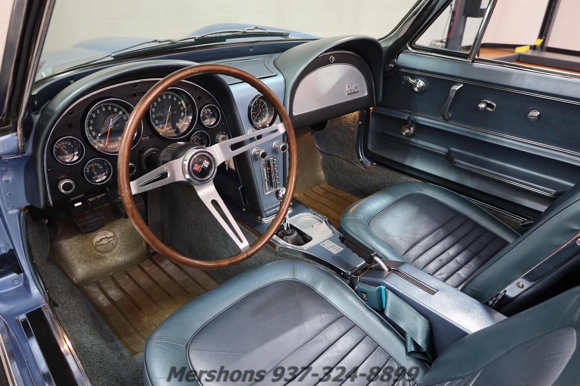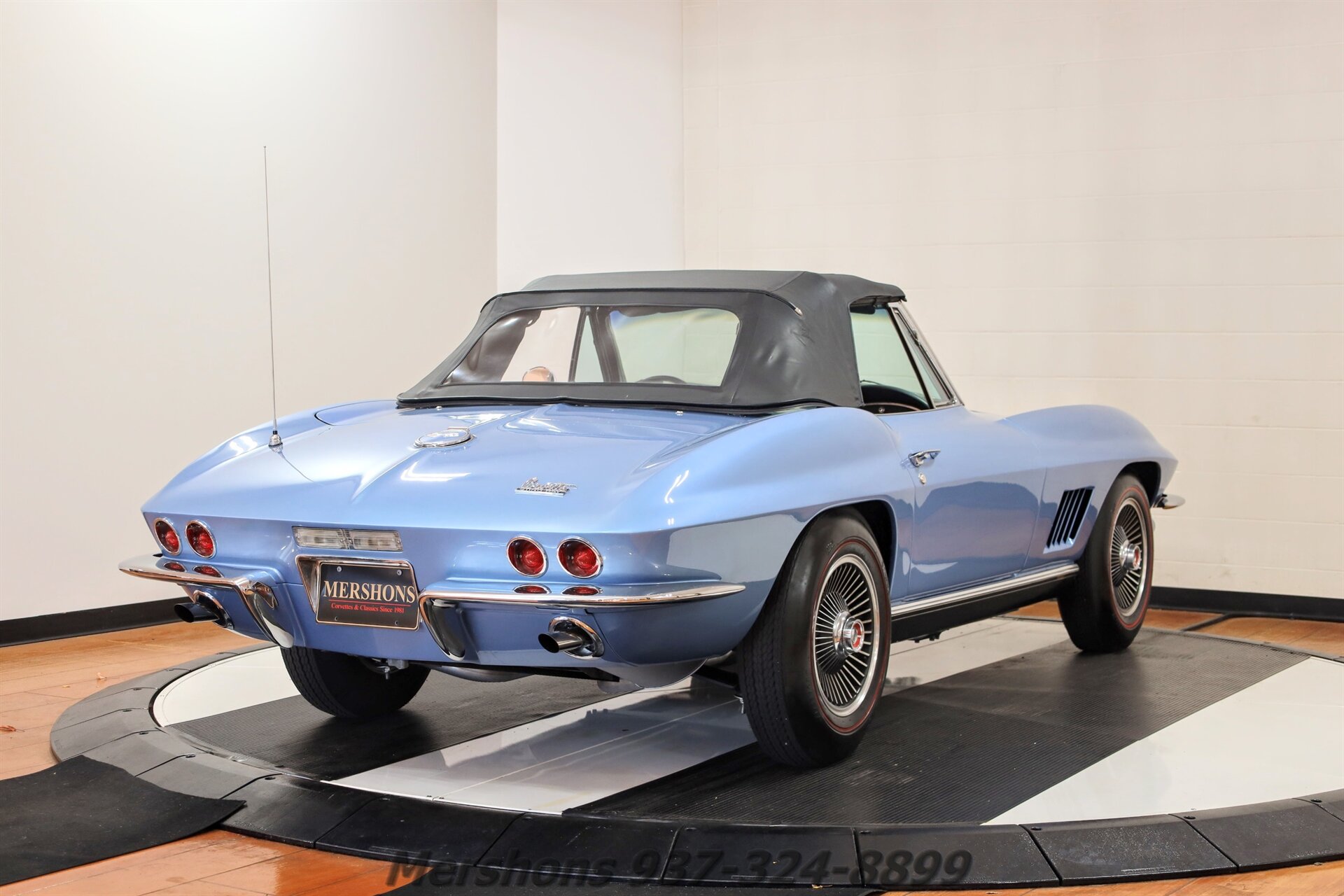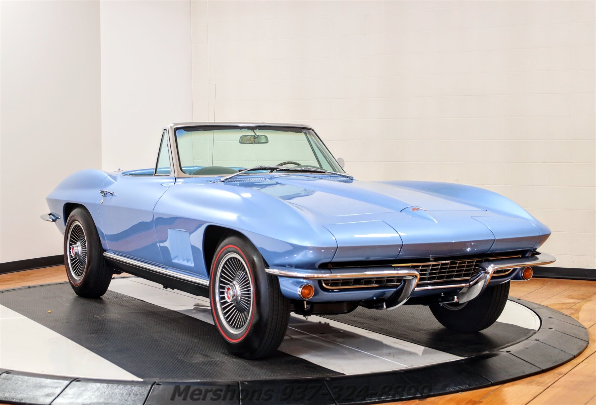 Color Code 980 Elkhart Blue Over Trim Code 418 Teal Blue with a Black Convertible top. Casting Number '3892657' HE Suffix Block. Numbers Matching 327 300 HP paired to a 4 Speed Manual Transmission. Many Factory Type Components including Power Steering, Reverse Lockout Shifter, ignition shielding, air cleaner, gas door assembly, door panels, bowtie mirror, Dash pads, Bolt On Wheels with Redline Tires and much more! Rare and Highly Desirable One year only Elkhart Blue! Paired with Teal Blue creating a Fantastic Color Combination! Very Nice Frame off Restoration! Clean and Dry Underbody! Rare Color Combinations make for excellent investments! So please give us a call today for more detailed information!