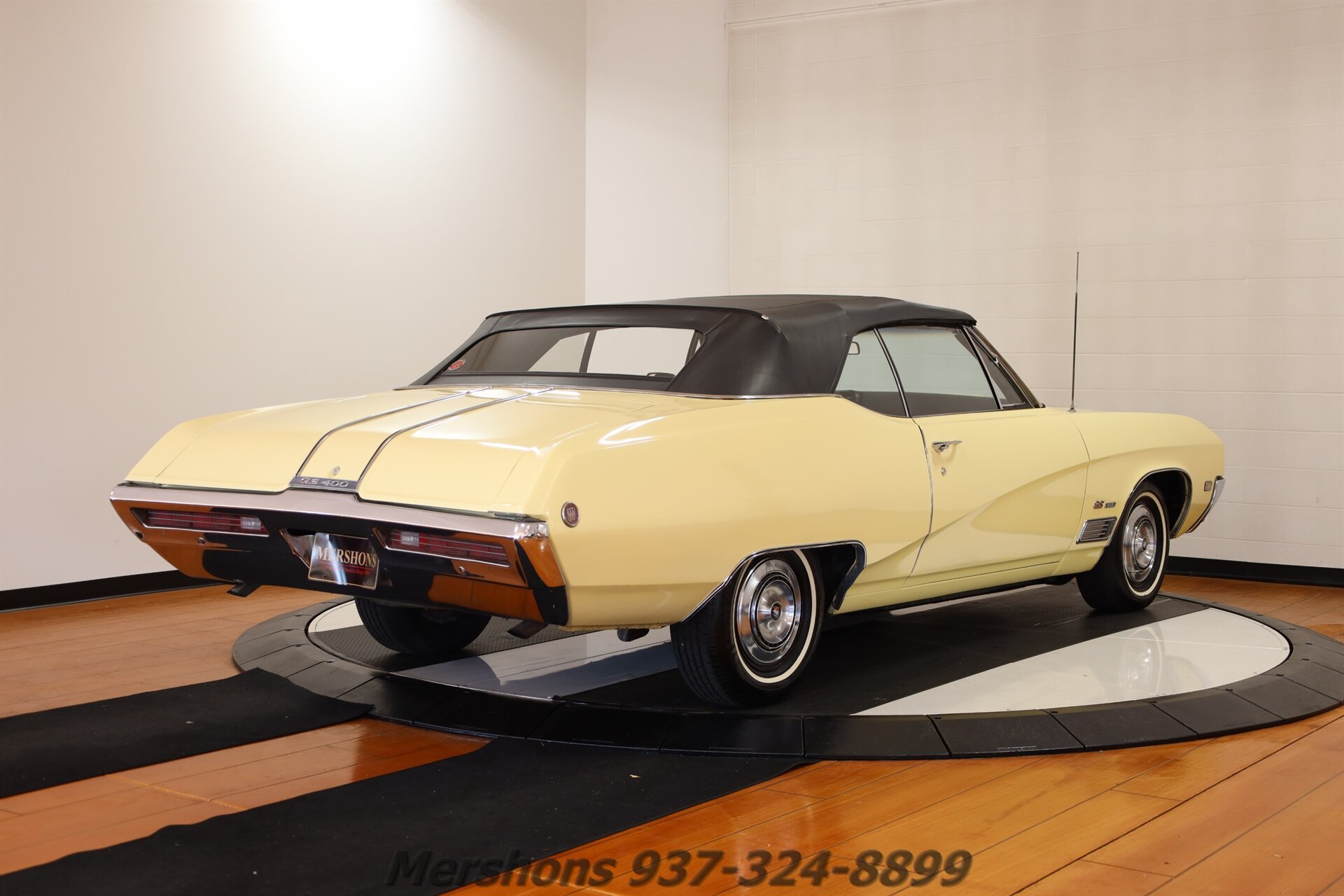 Color Code Y Cameo Cream over Trim Code 158 Black Interior with a Black Convertible Top. Buick 400 Cubic Inch 6.6L V8 paired to an Automatic Transmission. Features Include Power Convertible Top, Power Steering, Power Brakes, AM Radio with 8-Track, GS400 Emblems and Trunk Chrome Trim, Stainless Wheel Covers with Whitewall Tires and much more! What a RARE find! A One Owner, Unmolested 1968 GS400!! And a highly coveted Convertible! Incredibly well maintained, and everything works! Loads of fun to drive, and so unusual you may not see another like it! So please give us a call today for more detailed information! We would love to hear from you!