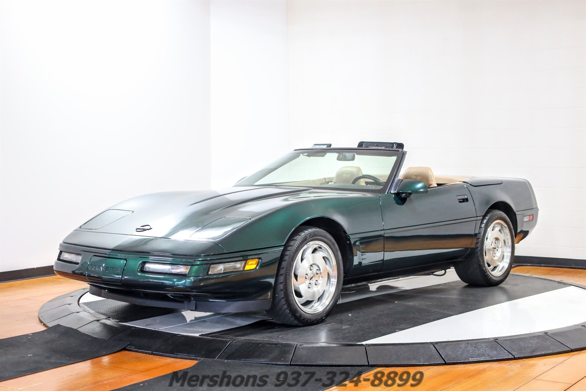 Color Code 45 Polo Green Metallic over a Saddle Tan interior with a Saddle Tan Convertible Top. LT4 330 HP V8 Paired to a Six Speed Manual Transmission. Features include Ride Control, Cruise Control, Power Seats, Tilt and Telescoping Column, Factory Air with digital climate control, Power Steering, Power Brakes, Fog Lamps, Aluminum Wheels wrapped in performance radials and much more! What a Gorgeous Color Combination! Polo Green over Saddle! And the Saddle Top really sets this Corvette off! C4 Corvettes are underappreciated and a performance bargain! 9,000 ACTUAL MILES! Very Desirable Six Speed as well! If you are looking for a Beautiful C4 Corvette look no further! This is the one! So please give us a call today!!