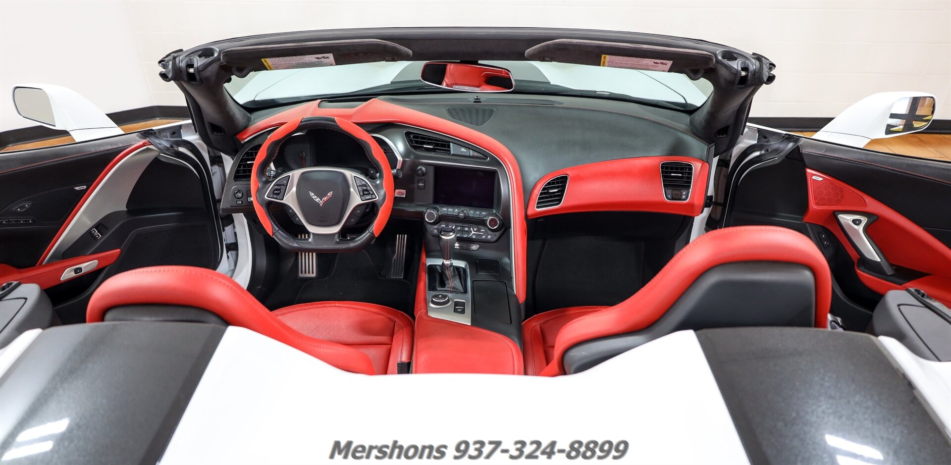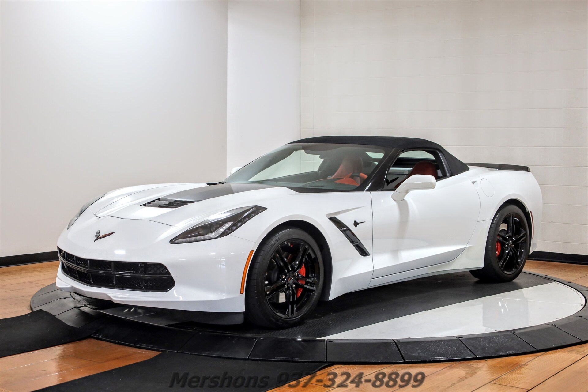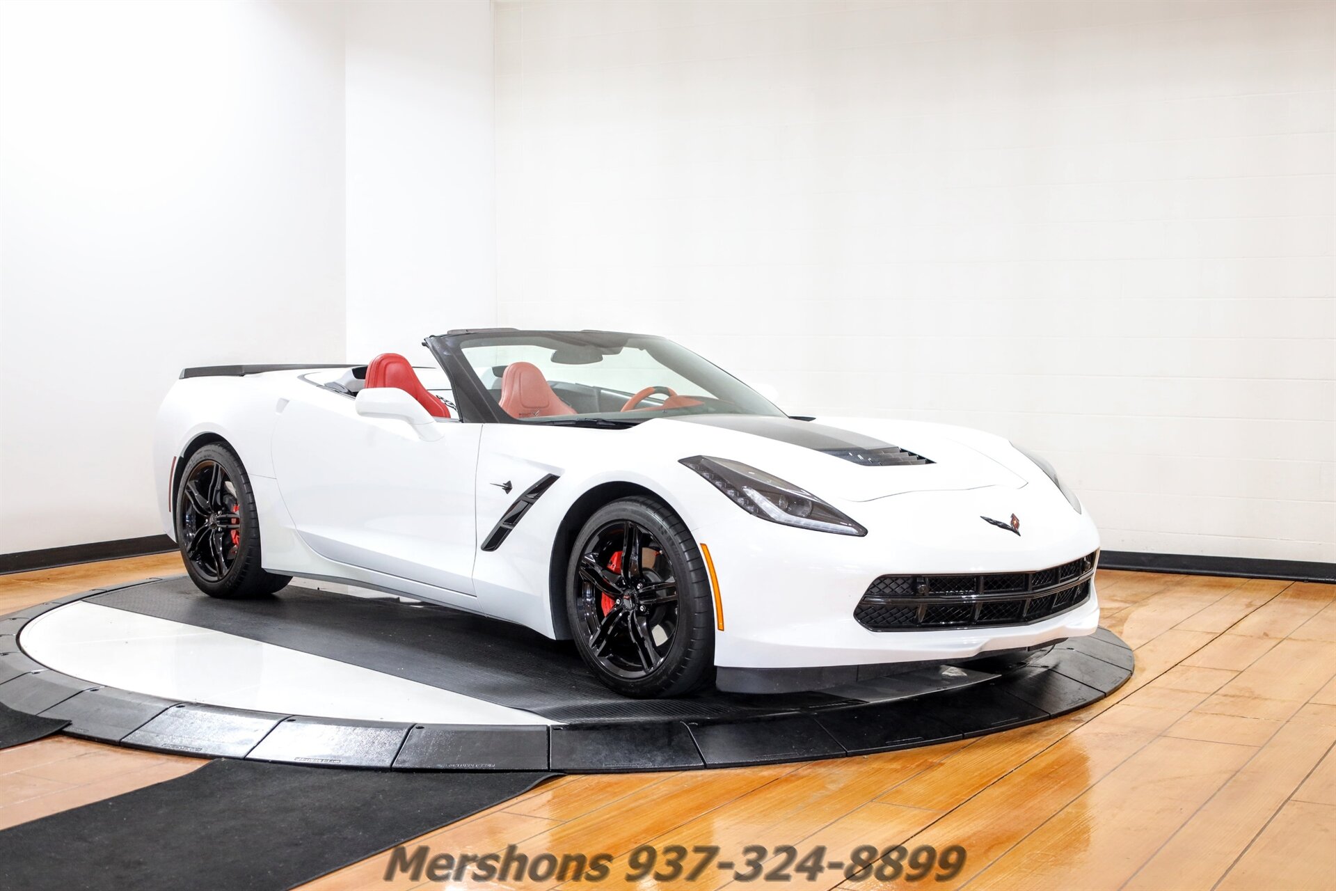 Arctic White over an Adrenaline Red Interior. LT1 6.2L V8 455hp 460ft/lbs. Automatic. Features include Factory Air Conditioning and Dual Zone Climate Control, AM/FM/Satellite/Bluetooth Touchscreen radio, Back up Camera, ABS, Traction control, Keyless entry, Remote Start, Driving Mode Select, Gloss Black Wheels wrapped in Performance Radials and much more! This is a Highly Desirable Corvette! Arctic White on Red is Always a Popular Combination! Like New Condition, with only 22,000 Miles on the Clock! If you are looking for a Gorgeous C7 this is the one! So please give us a call today, we would love to hear from you!