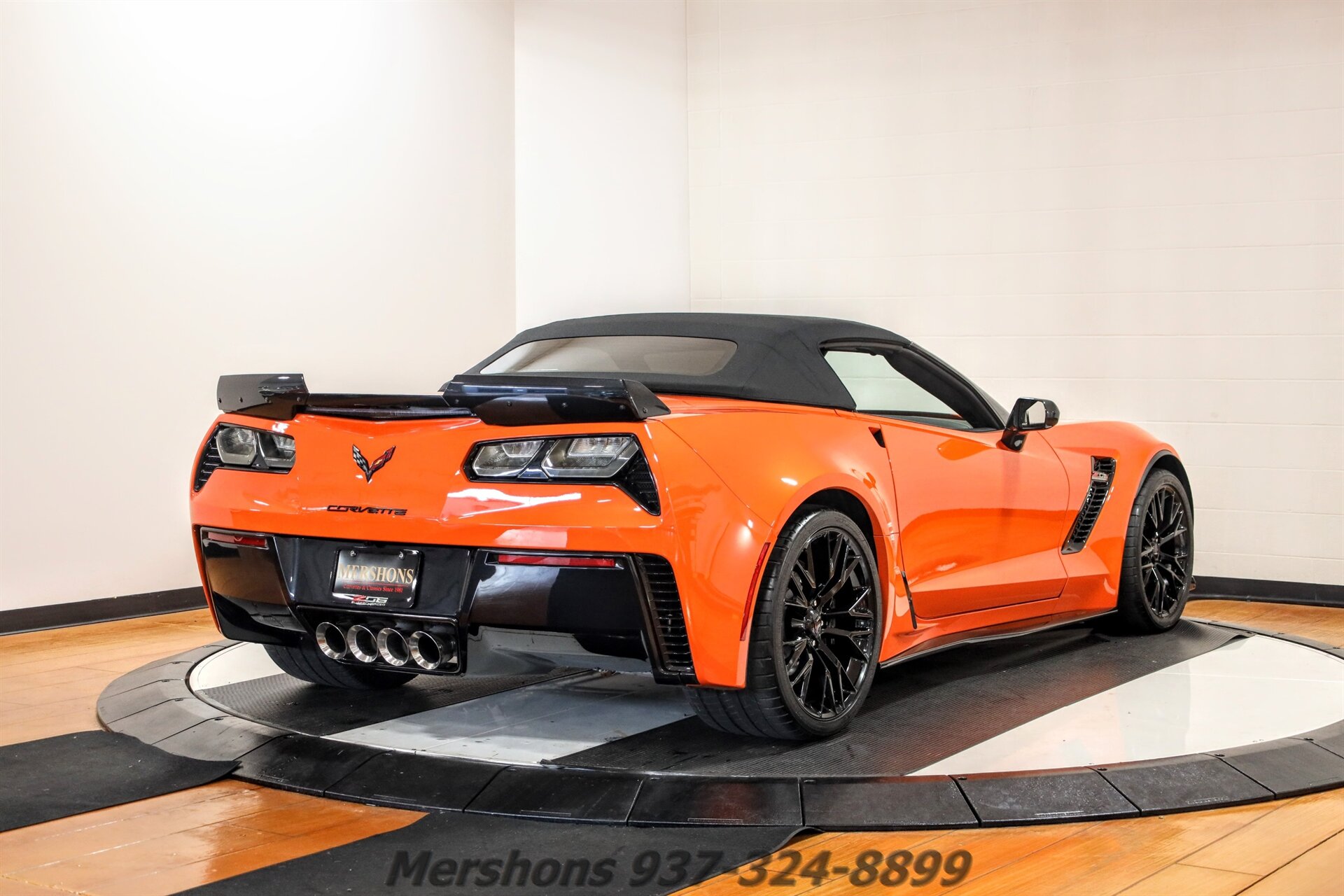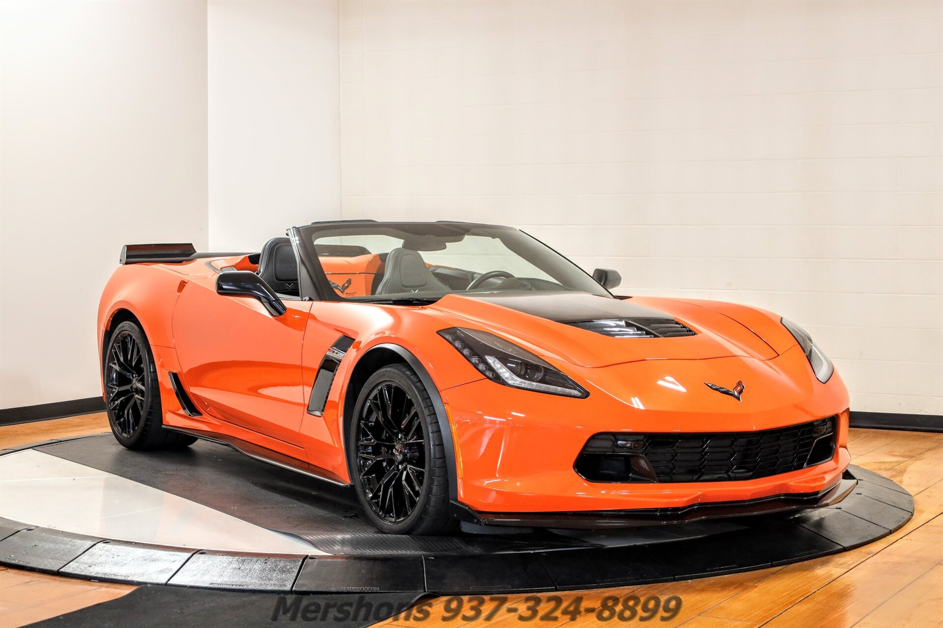 Sebring Orange Tintcoat with Carbon Accents with Jet Black Interior and a Black Power Convertible Top. Supercharged LT4 6.2L V8 650hp 650ft/lbs. Automatic. Features include Factory Air Conditioning and Dual Zone Climate Control, AM/FM/Satellite/Bluetooth Touchscreen radio, Back up Camera, ABS, Traction control, Keyless entry, Remote Start, Driving Mode Select, Z06 Spoiler and Ground Effects, Gloss Black Z06 Wheels wrapped in Performance Radials and much more! GORGEOUS Sebring Orange with Genuine Carbon Fiber Accents! This is one of the LOWEST Mileage Z06's we have ever seen! It is essentially a Brand NEW Car!! Immaculate Cosmetics! Perfect Interior, and everything works! Drives like a car with only 1,900 ACTUAL Miles! And TONS of power on Tap with the Supercharged LT4! This Z06 Stands out in a Crowd and you likely will not see another Sebring Orange Z06 while you own this one as only 599 were ever built! 2019 is also the LAST year of the Classic Front engine Rear Drive Corvette! A future collectable for sure! So please give us a call today, we would love to hear from you!!