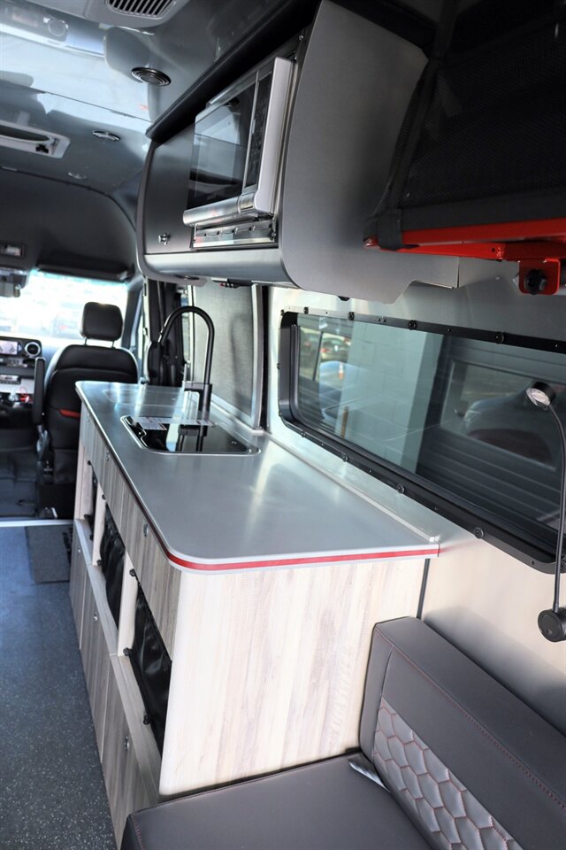 Silver Grey over Black And Red Interior. BlueTEC 3.0L Diesel Turbo V6 188hp 325ft. lbs. paired to an Automatic Transmission. Features Include Air Conditioning, Solar Panels, Heated Wetbath with Toilet, Shower, & Sink, 23 Gallon Fresh Water Capacity, Refrigerator and Freezer, Two Burner Cooktop, Active Rear Cross Traffic Assist, Active Brake Assist, Front and Rear Parktronic Parking Assist, Multiple Safety Impact Air Bags, Rear & Side Camera Assist, Black Roof Rack, LED Exterior Off Road Lighting, Black Protective Coating (lower moldings, front & rear bumper, front air dam), Driver and Passenger Side Black Running Boards, Hydraulic Leveling Jacks, Locking Service Boxes, Portable Air Compressor, 110V Exterior Outlet, Side Screen Door (Sliding Panel), Power Armless Awning with Auto-Retract, Advanced Multifunctional Steering Wheel, MBUX Infotainment System (Mercedes-Benz User Experience) Touch Screen, Pinch, Zoom, Voice Recognition, Apple Carplay, Android Capability, Premium Digital Media Receiver with Bluetooth Connectivity, Push Button Keyless Start, Tilt and Telescopic Leather Steering Wheel, Blackout Privacy and Light Shades, Flex Bed System, Modular Solid Surface Table, Overhead Storage Compartments/Solutions, Pantry with Built-In Drawers & Shelves, Signature Aluminum Ceiling & Trim, .7 Cu. Ft. Roof Locker Microwave, Multi-Speed Roof Mounted Fan, Sink with Integrated Cover, All Terrain Tires on Black Offroad Wheels and much more! Born out of a partnership between two LEGENDARY Brands! Mercedes and Airstream! This is a Camper that you can take virtually anywhere! Excellent fuel economy for its size, and incredible capability with its 4WD and All Terrain tires! Wonderful to drive on the Interstate, or in the wilderness! Powered by an indestructible Mercedes Diesel, and finished out by Airstream! Nearly $300,000 when new, and this one IS NEW! Only 1,200 ACTUAL MILES! This one still smells new inside! Just a wonderful deal on an incredibly capable vehicle! So please give us a call today for more detailed information!!