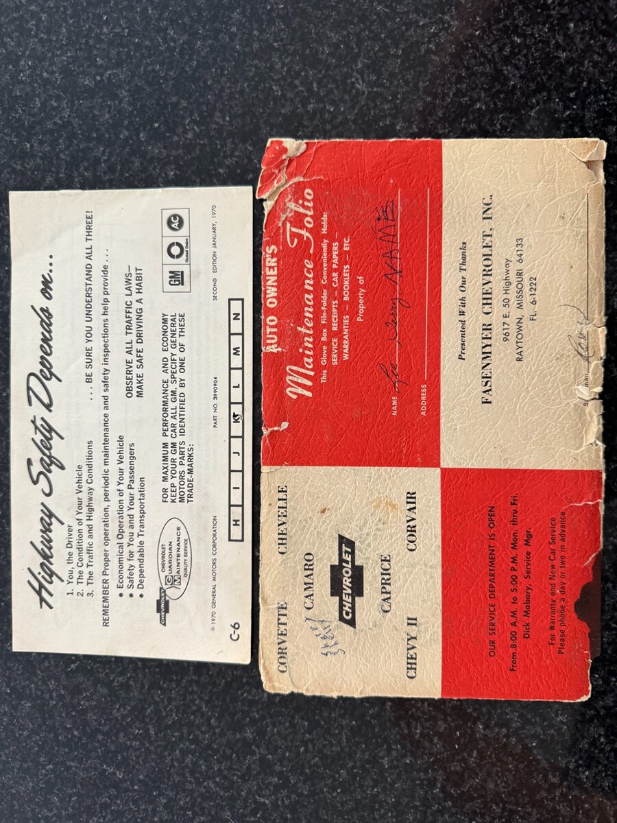 Color Code 48 Forest Green with White Stripes over a Trim Code 796 Metallic Dark Green. Casting Number '3968854' Numbers Matching 396 350 HP Paired to a 4 Speed Manual Transmission. Features Include Cowl Induction Hood and Air Cleaner, F41 Suspension, 12 Bolt with Sway Bar, Factory Tach, Bucket Seats with Console, Power Steering, Power Front Disc Brakes, and 5 Spoke Wheels with White Letter Radials and much more! Lots of documentation! Protect-O-Plate and Build Sheet! REAL DEAL 396 SS!! Lots of great original Documents! Not often you come across a 1970 Chevelle SS with this kind of documentation! And it has a super straight Rust Free Body! Clean and dry Undercarriage! And it is Fun to Drive with a 396 and a 4 Speed!! Dialed in! And a Rare and Unusual color Combination that will make this Chevelle Stand out in a Crowd!! '70 Chevelles Do not last long here at Mershon's! So please give us a call today!