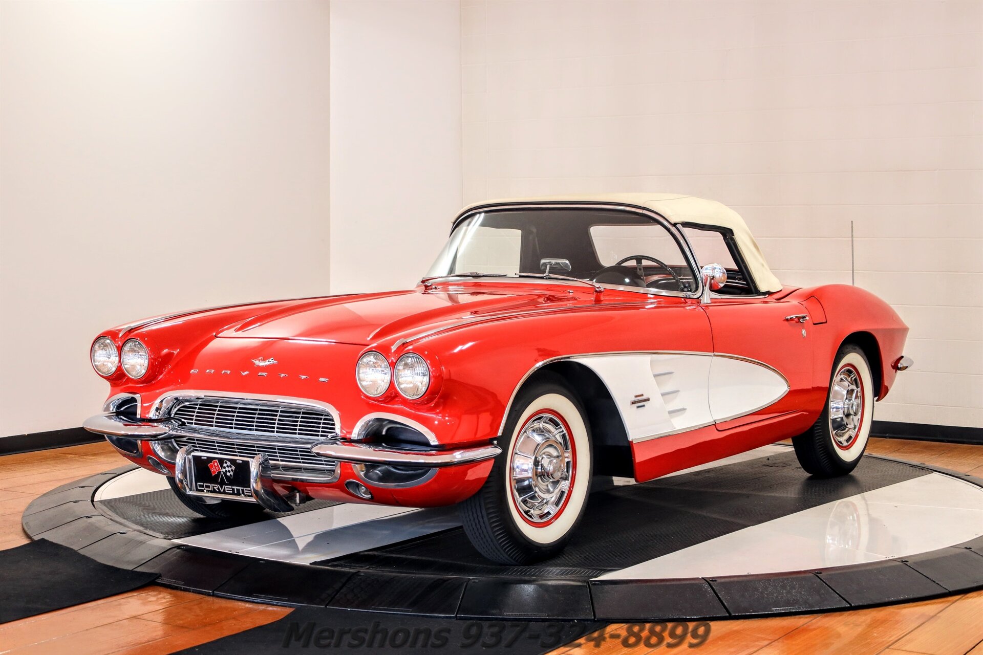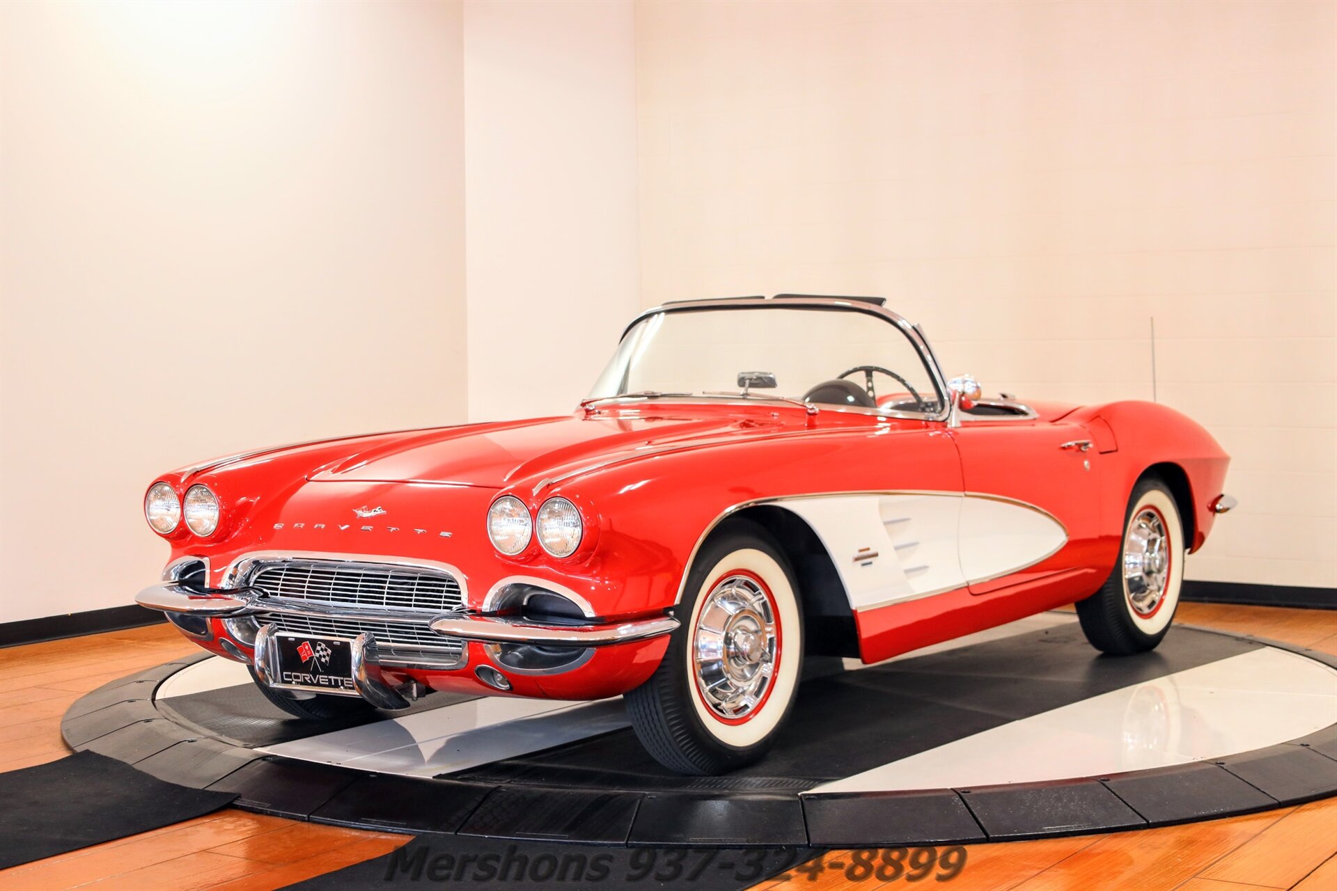 Roman Red with White Coves over a Black interior. Casting Number '3858180' Small Block Paired to a 4 Speed Manual Transmission. Features Include Wonderbar Radio, Courtesy Light, Reverse Lockout Shifter, Ignition Shielding, Windshield Washer Bottle, T3 Headlamps, Harrison Radiator and Overflow, Stainless Wheel Covers with Whitewall Tires and more! The most Iconic Color Combo for a Solid Axle Corvette! Roman Red with White Coves! This car turns heads everywhere it goes! Gorgeous Cosmetics, great shine and reflections in the paint! Excellent Stainless and Chrome! Dialed in Small block that is fun to drive! What an addition to any Collection! It looks great out on the road, and will be very popular at your local cruise in! So please give us a call today for more detailed information on this Beautiful Early Corvette!