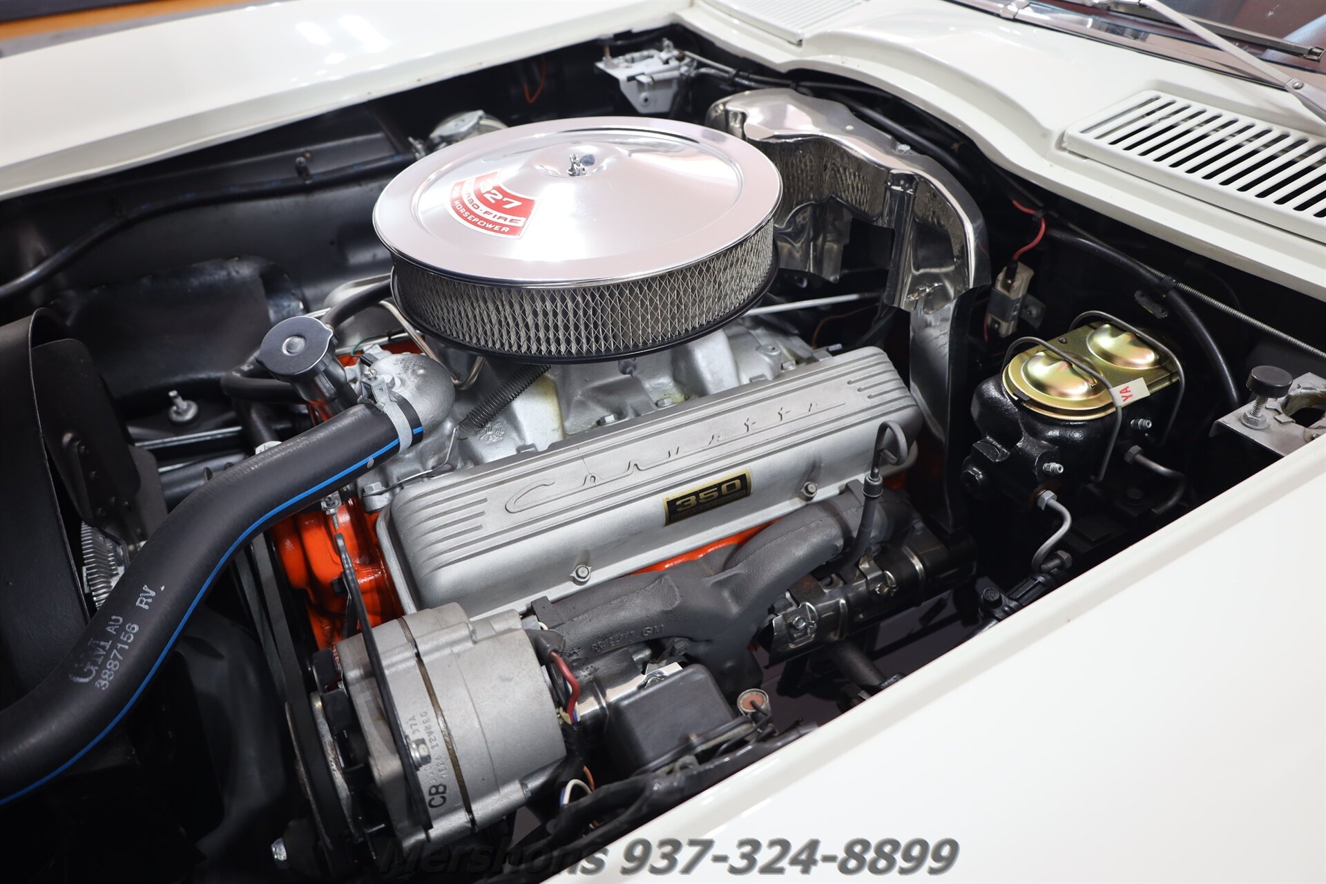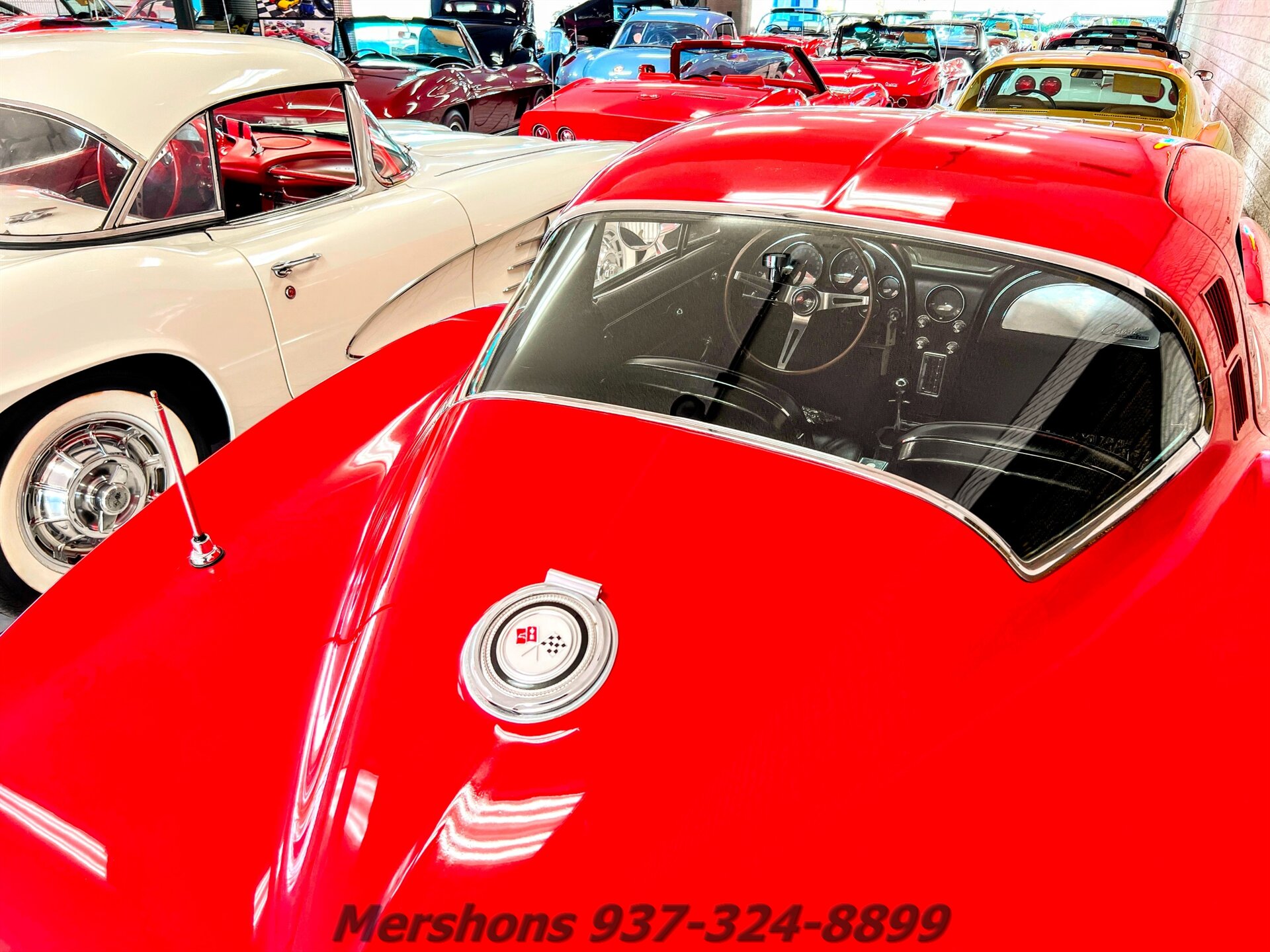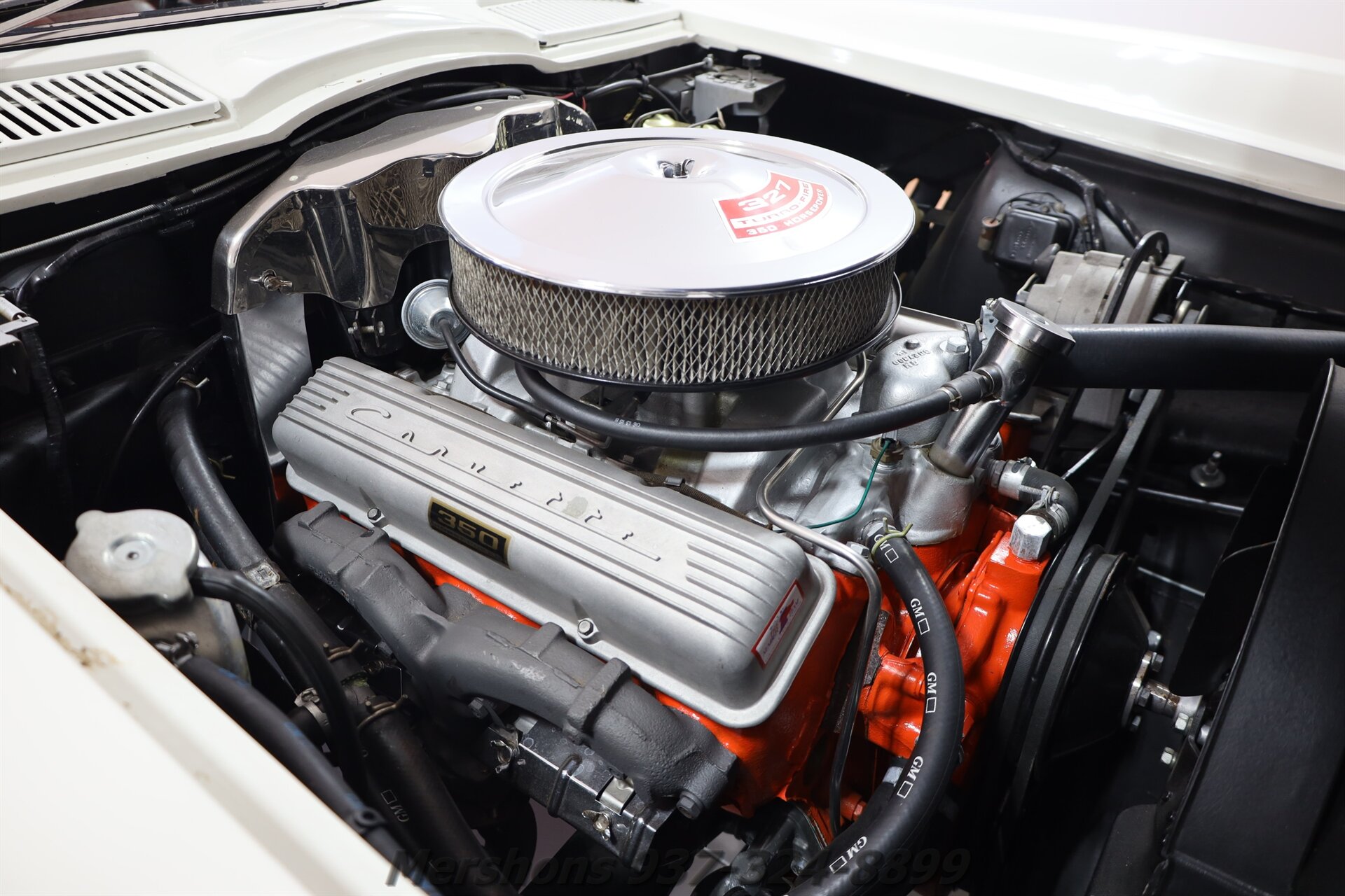 Color Code 972 Ermine White over Trim Code 407 Red Interior. Casting Number '3892657' HT Suffix Block. Numbers Matching 327 350 HP 4 Speed. Many Factory Correct type components including Power Steering, ignition shielding, air cleaner, Harrison radiator and expansion tank, Reverse Lockout shifter, dash pads, door panels, Bolt on wheels with Redline Radials and more. This is one of the BEST Color Combinations on any Corvette! Great Cosmetics, Beautiful Stainless and Chrome! Immaculate Interior! Clean and Dry Undercarriage. Very Tight, with great gaps! Numbers Matching Transmission and Date Code Correct 3.55 Rear end! An L79 Corvette Coupe is an Excellent investment piece, and they do not last long here at Mershons! So please give us a call today for more detailed information on this Gorgeous Mid-Year!